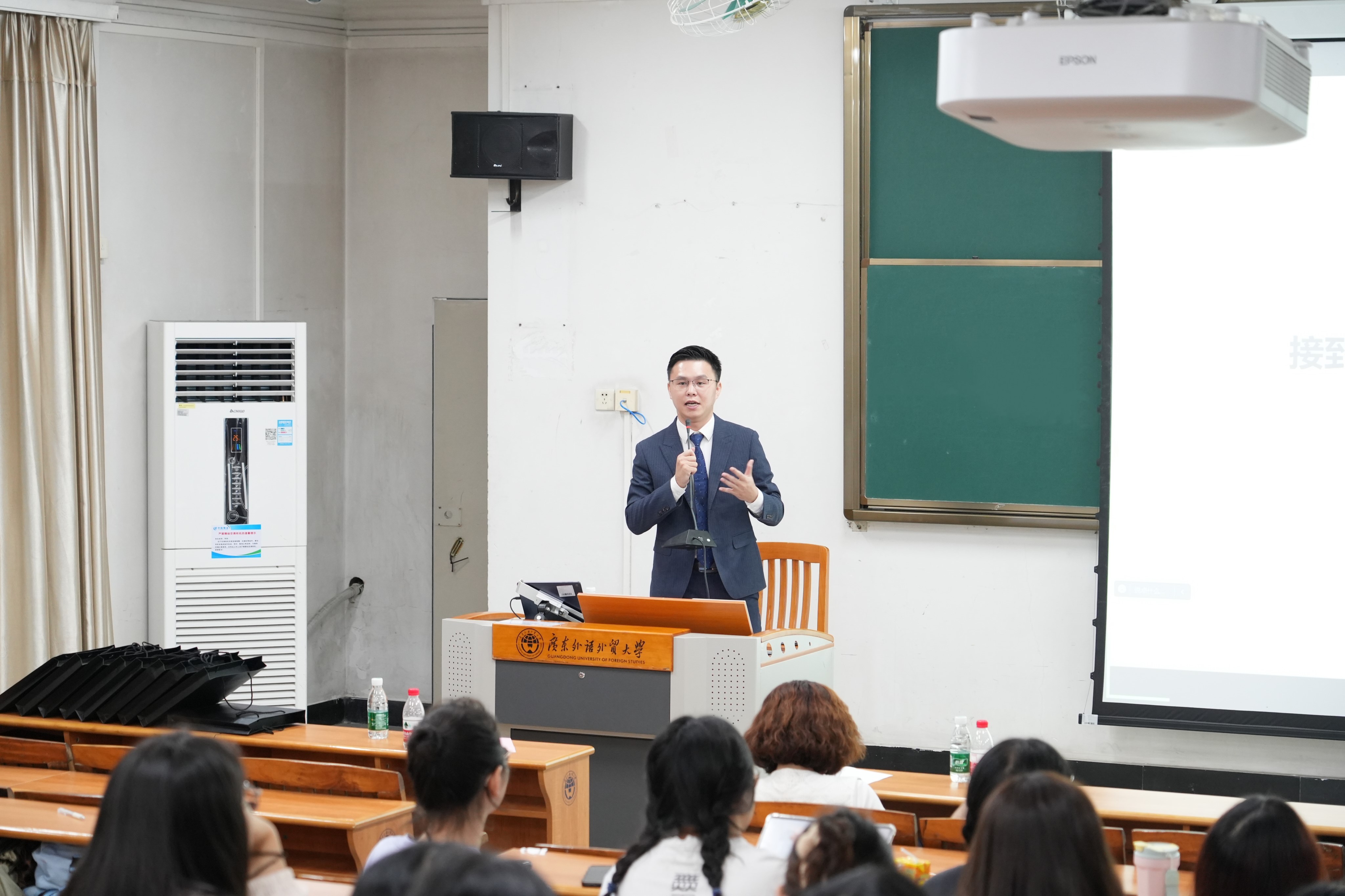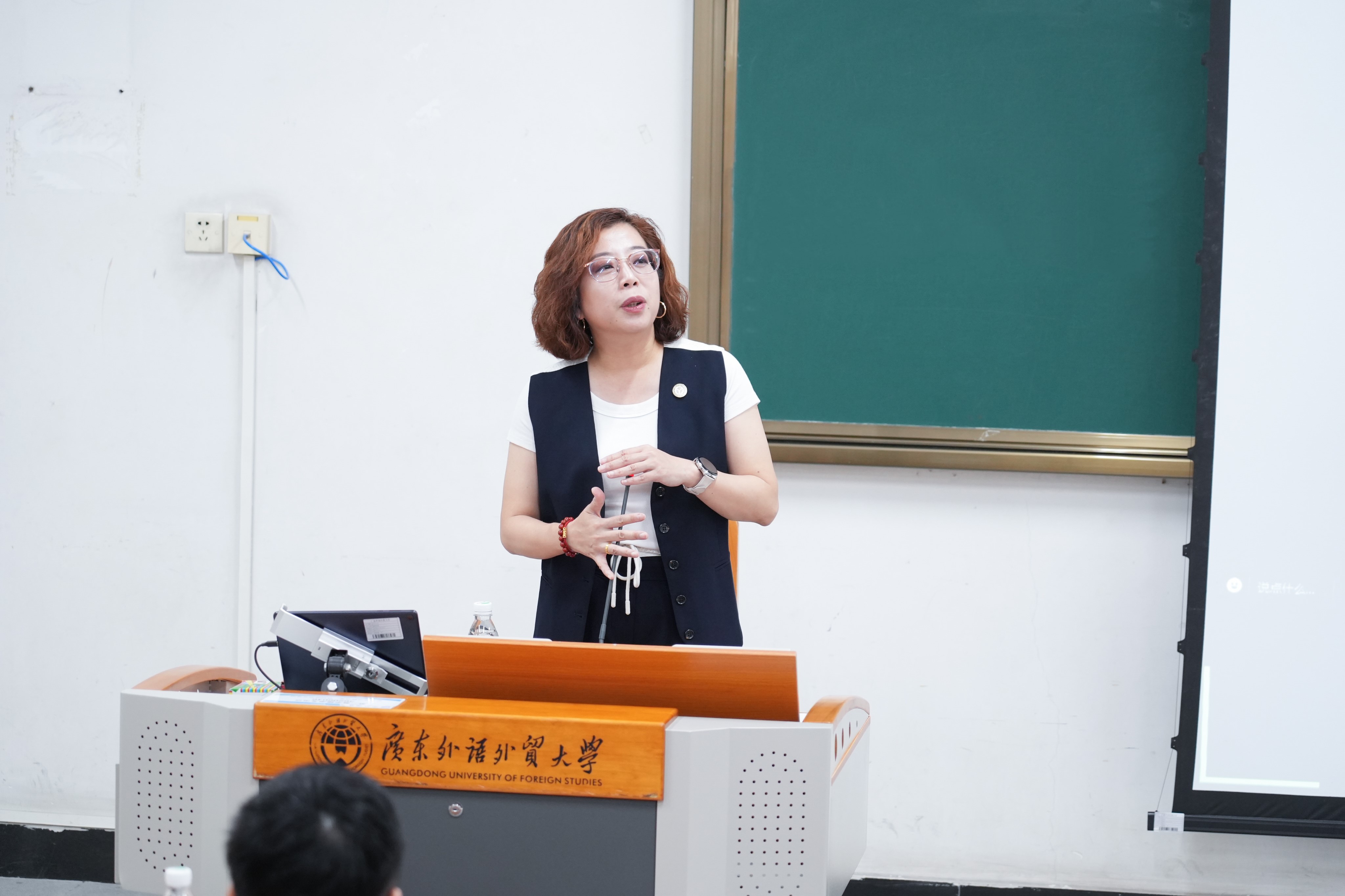 在师生的热情期待下,两位律师陆续上台分享其在涉外律师职业成长与规划道路中的心得体会。翟彩娟律师分享的主题是《走向你想和理想的职业之路》。翟律师指出,她就是广外毕业的,是小同学们的大师姐,自己就是得益于母校当年的复合型培养模式,得益于娴熟的英语能力。她从自身的经历出发,告诉同学们“外语+专业”是一个很好的组合,是进入职场的一块敲门砖。今年,母校就为同学们提供了一个更好的机会——包括“商务英语+法学”在内的9个双学位学士复合型人才培养项目获批,同学们要抓住机会。此外,翟律师结合生动有趣的例子,分享了涉外律师业务中的一些必备能力与注意事项。她指出,“外貌”是一门学问,在职场中保持得体、合适的装束很重要。其次,不仅要学会学习,更要学会挖掘自己的价值。最后,翟律师指出,涉外律师的“涉外”不是一个独立的领域,而是一种能力,是律师在原有擅长的业务上加载的元素。因此,同学们要夯实英语基本功,为将来的涉外律师实务奠定厚实的基础。