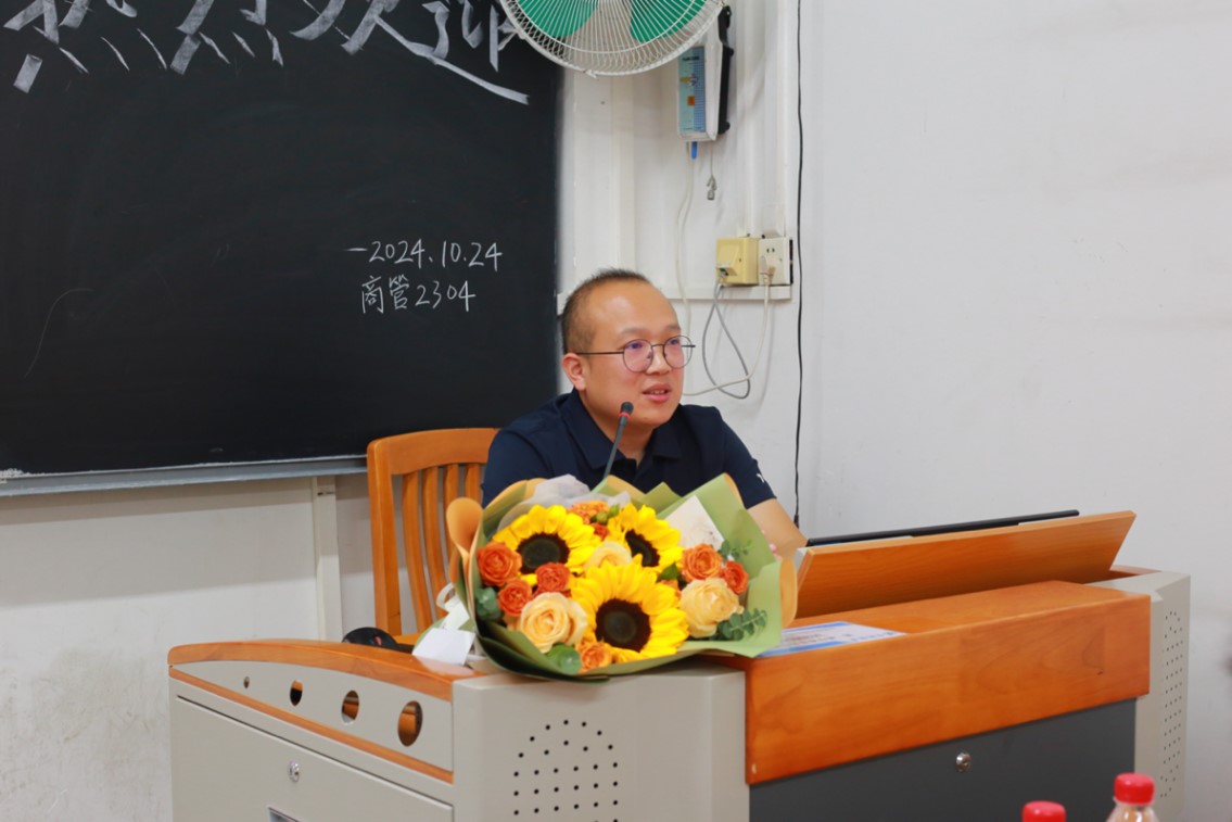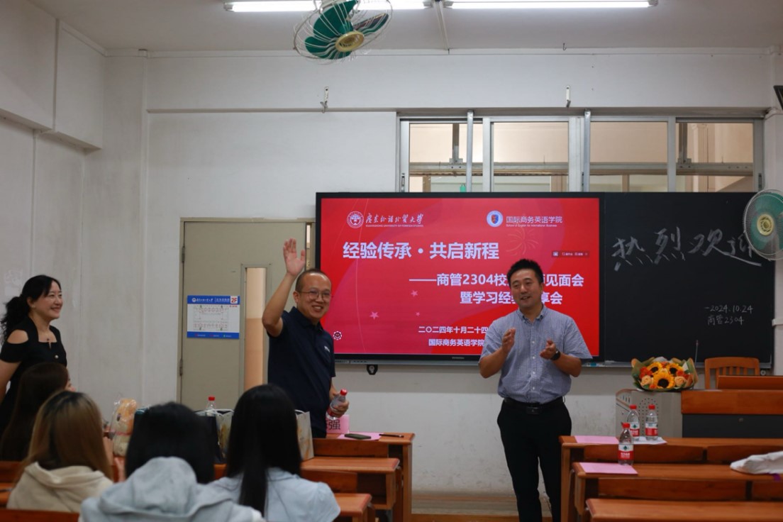 2024年10月25日下午,商务英语(国际商务管理)2304班“四导一体”见面会暨学习经验分享会在二教239课室顺利举行。williamhill官方网站副经理汪谓超、商管2304班校外导师陈强、商管2304班班级导师李坚、2023级本科生辅导员林童老师及商管2304班朋辈导师徐罗希出席此次会议。商管2304同学参与此次见面分享会。