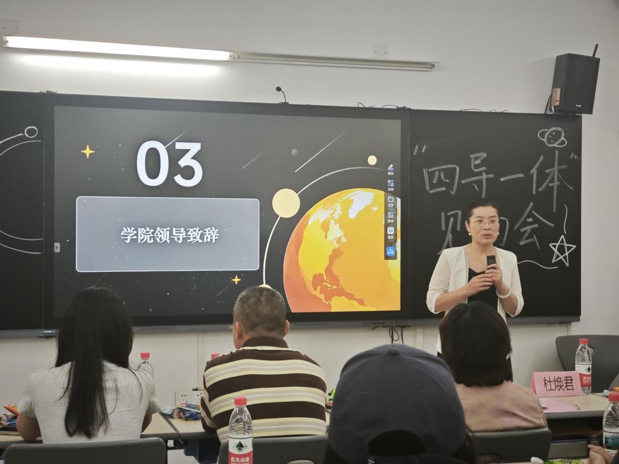 会议伊始,公司党委副书记杜焕君为活动致辞。杜书记对四位导师的到来表示热烈欢迎,对廖娜导师一直以来的支持表示真诚感谢。并向师生们介绍了公司“四导一体”培养体系的设立初衷和意义,叮嘱同学们珍惜与导师交流的机会,积极主动向导师及优秀员工们请教,并期望同学们能早日明确未来规划,做好人生计划,成长为社会所需的高质量复合型人才。