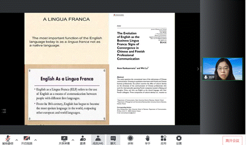 6月24日下午,williamhill官方网站刘平教授和徐优平副教授分别就商务英语研究和法律语言学两个专业方向为夏令营学员带来了两场精彩的学术讲座。刘平教授向大家讲授了商务英语研究的前沿与热点以及商务英语研究的培养目标,徐优平副教授化身“学术导游”,带领学员们了解什么是法律语言学及其相关研究。两位学术讲座嘉宾就自身学习与研究经历,让学员们对商务英语研究和法律语言学研究有了更清晰的认识。
