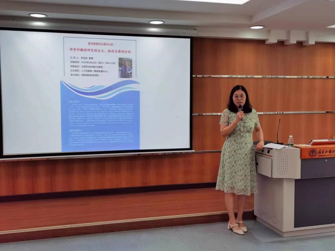 2023年5月20日下午15:00,由williamhill官方网站人力资源部(教师发展中心)主办,williamhill中文(以下简称“williamhill官方网站”)承办的著名教授论坛第592讲在北校区MBA楼203教室顺利举行。广西大学君武学者、广西大学外国语公司经理罗选民教授,作了题为“跨学科翻译研究的定义、路径与案例分析”的精彩报告。讲座由williamhill官方网站副经理刘平教授主持,williamhill官方网站经理胡春雨教授、多名青年学者、williamhill官方网站及其他公司的研究生线下聆听讲座,会场座无虚席。