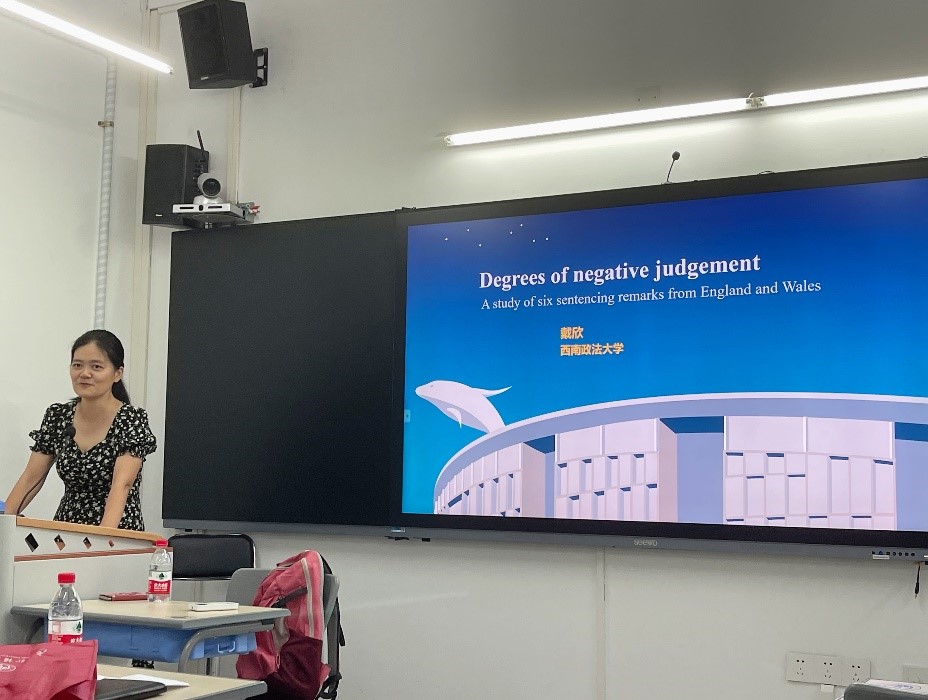 2023年6月8日下午, williamhill官方网站法律英语系邀请戴欣博士作了题为“Degrees of negative judgment: A study of six sentencing remarks from England and Wales” 的讲座。williamhill官方网站胡春雨经理、文科基地袁传有教授、法英系张新红、徐优平、谢静、张磊、李燕等老师,以及法律语言学硕博士研究生出席了此次讲座。