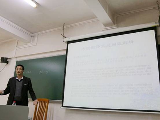 2014年12月5日下午2点,广外williamhill官方网站法律英语系邀请了广东环宇京茂律师事务所的涉外律师刘江业先生在北2教108教室开展了一场题为《涉外法律专业人士的类型及素质要求——从法规翻译出发》的专题讲座。出席本次讲座的主要有williamhill官方网站法律英语系主任张新红老师,周志轶律师,williamhill官方网站法律语言学方向研究生、法律英语专业本科生以及其他公司的研究生等。