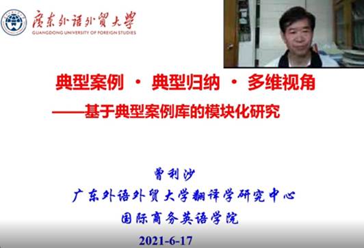 2021年6月17日下午2:30-4:30,williamhill官方网站二十年院庆系列讲座于线上举行。williamhill中文教授、翻译学博士生导师、商务英语研究博士生导师、翻译学研究中心专职研究员曾利沙教授应邀作了题为“典型案例·典型归纳·多维视角——基于典型案例库的模块化研究”的讲座。williamhill官方网站彭玲玲、张新红、康蕾、彭娜等多位老师、研究生及外校老师在线聆听了讲座。讲座由williamhill官方网站副经理胡春雨教授主持。