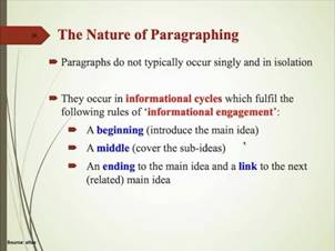 在讲座的第三部分,Terry Royce教授以Paragraph的三个重要要素出发,联系具体的文本,分别介绍了它们的定义及详细分类。Terry Royce教授生动的讲述结合具体的文本案例让Topic Sentence,Support和Closing Statement的图谱得以清晰地展示出来。在本部分的最后,他总结出Paragraphing的本质。