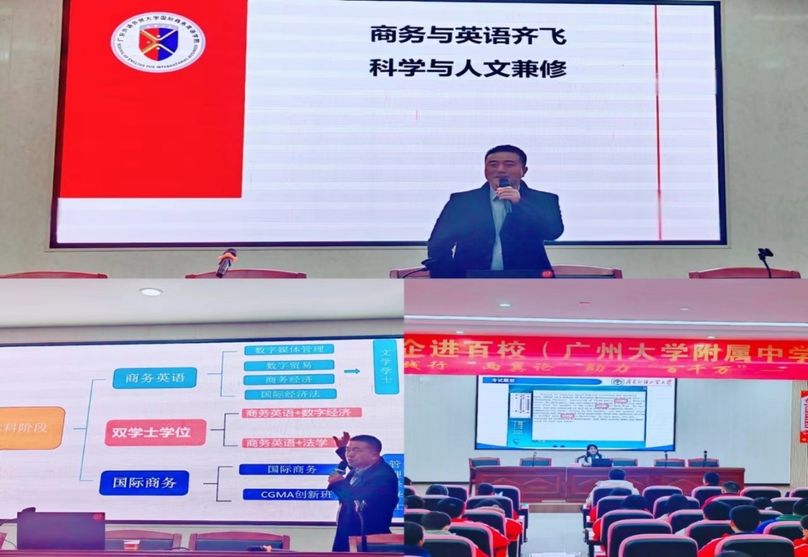 为进一步吸引更多优质生源和提升公司影响力,3月1日,williamhill官方网站副经理汪谓超、英语教学部主任严小庆、教师郑有耀一行3人应邀前往清远市重点生源校英德市广大附中、英德中学进行招生宣讲活动。