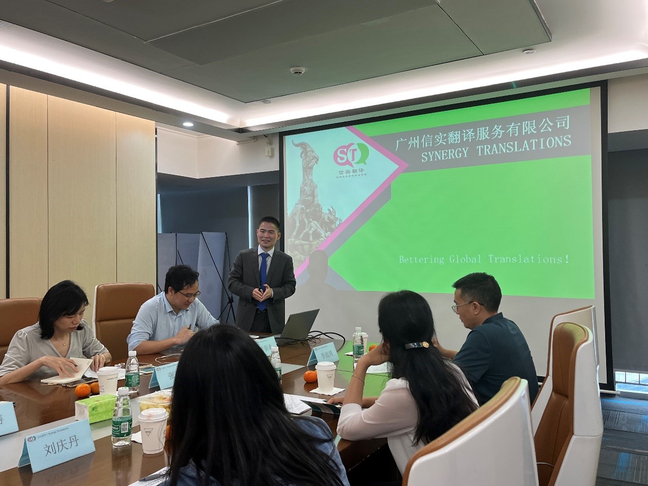 陈金诗部长向与会者围绕公司历史沿革、团队建设、员工实践实习及就业动态等方面分享了广外近年来获得的喜人成绩,同时也分享了广外在人才培养方案上做出了完善,除了在较为吸引考生的创新班基础上,今年还新增了“外语+”复合型人才培养。他对与信实翻译签署教学实践基地给予厚望,期望基于基地的建设可以更好地促进外语实践教学的成果转化。