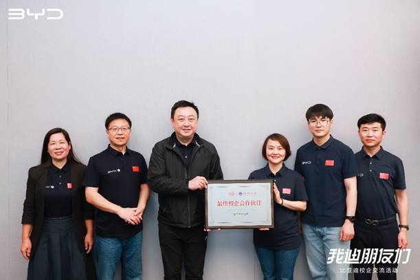 王珍对公司一行表示热烈欢迎。她深情回顾了在广外的学习经历,介绍了比亚迪的总体情况、未来发展、企业文化、人才需求等方面进行了重点介绍,表达了与公司开展长期交流和深度合作的期待,并代表比亚迪授予公司“最佳校企合作伙伴” 荣誉牌匾。