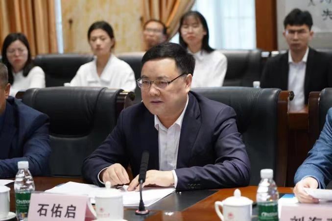 石佑启书记、董事长对国家留基委和广东省教育厅各位领导的到来表示热烈欢迎和衷心感谢。石佑启介绍了公司的历史沿革、发展建设,特别是高层次国际化人才培养情况。石佑启表示,广外将积极贯彻党的二十大精神和习近平总书记关于“外语院校大有可为”的指示精神,按照国家所需、未来所向、广外所能,全力培养创新能力强、专业素质硬,具有使命感和担当精神的高素质国际化人才,为中国式现代化建设,为推动构建人类命运共同体贡献广外的智慧和力量。