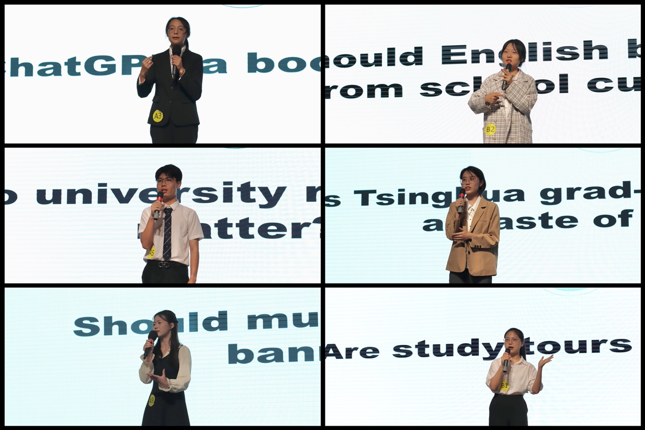 紧接而来是动人心弦的即兴演讲环节。晋级的8位本科生和3位研究生选手有的着眼于Chat GPT的发展,有的以成绩排名为出发点,阐述其必要性。还有的选手将公司结合专业进行对比分析,分享自己的见解看法。即兴演讲体现了选手们知识的广度、思想的深度,展现广外学子极强的语言表达能力和随机应变反应能力。