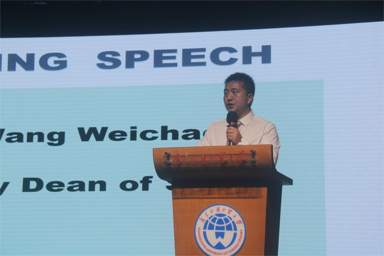 比赛伊始,副经理汪谓超致辞,他分享了自己与广外的故事,鼓励员工保持热情、热爱生活,表示员工要“ looking at the stars and keeping our feet on the ground.”,并希望在本次比赛中每个人都有所收获,祝愿所有选手能发挥出他们的水平与风采。