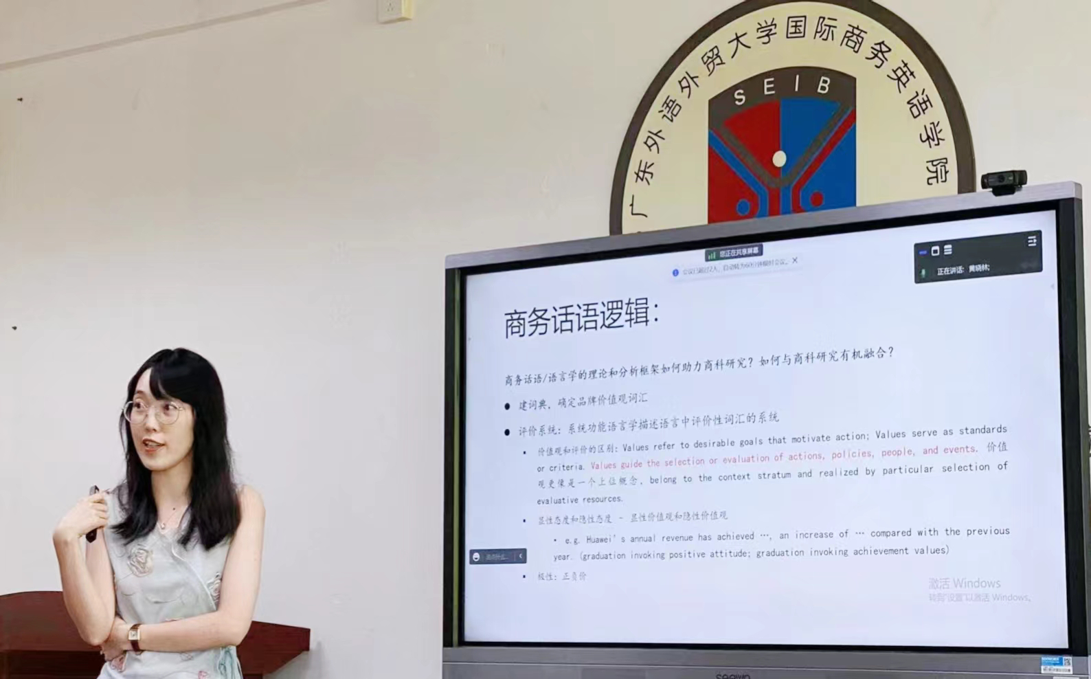 为推进学习贯彻习近平新时代中国特色社会主义思想主题教育走深走实,推动williamhill官方网站的科研发展,加强院内跨学科研究的交流,商英午间学术沙龙活动如期而至。2023年9月21日中午,本学期第一次商英午间学术沙龙在三教318进行。本次沙龙由国际商务管理与出海企业研究团队组长郝佳老师和商务话语研究团队的何宇菲老师带来分享。公司经理胡春雨、副经理刘平、副经理杨文慧、副经理汪谓超以及20多位教师参加了活动。