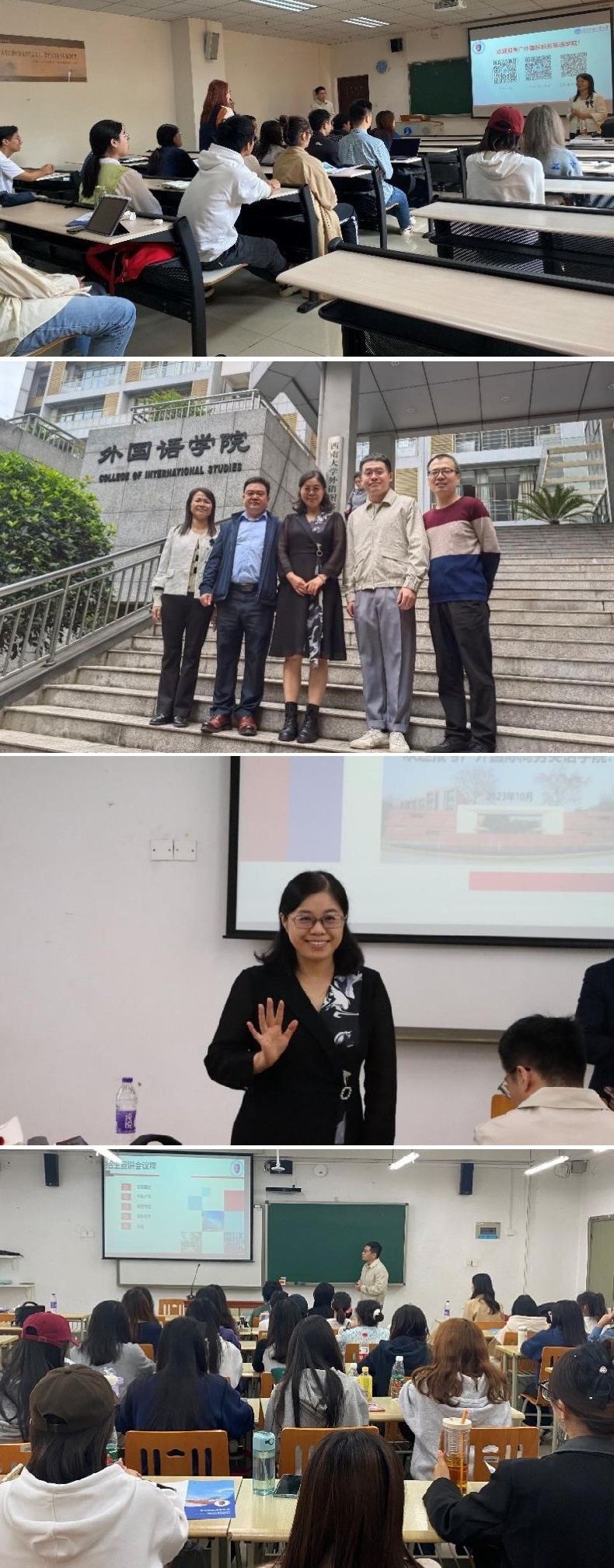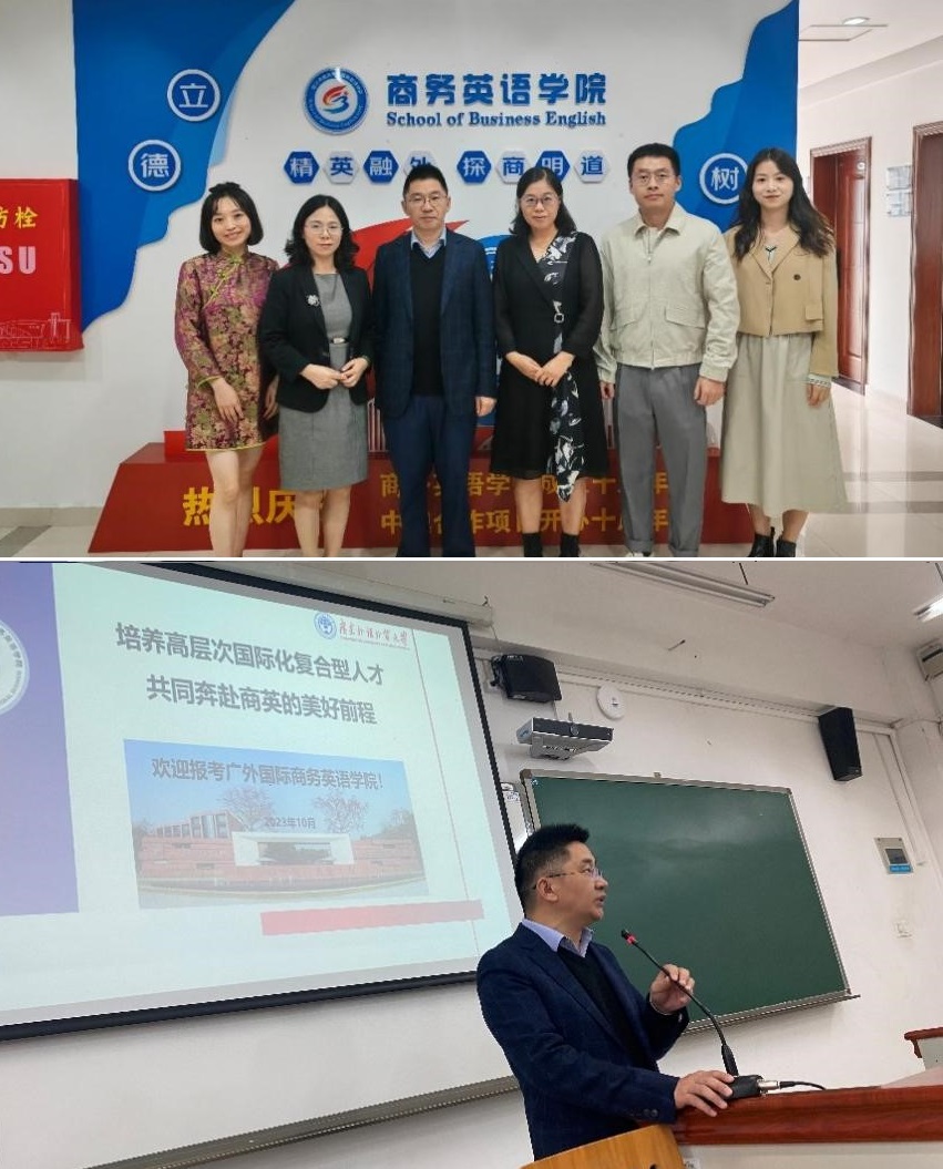 10月20日上午,刘平副经理带队首先来到重庆交通大学外国语公司,与该公司文亚星副书记就生源情况进行深入交流。文亚星副书记表示广外是他们公司员工梦寐以求的外语类高校,对williamhill官方网站组团来开展招生宣讲表示热烈欢迎。会谈过后是招生宣讲环节,卢楠主任以“培养高层次国际化复合型人才,共同奔赴商英的美好前程”为题,向同学们介绍了广外与williamhill官方网站的主要特色,包括专业与课程设置、导师队伍、科研成果,并讲解了研招考试相关事项,最后推介了公司多样的国际化项目。在答疑环节,刘平和徐优平两位老师为同学们介绍了公司公司产品的国际化程度与就业前景,鼓励大家报考广外williamhill官方网站。