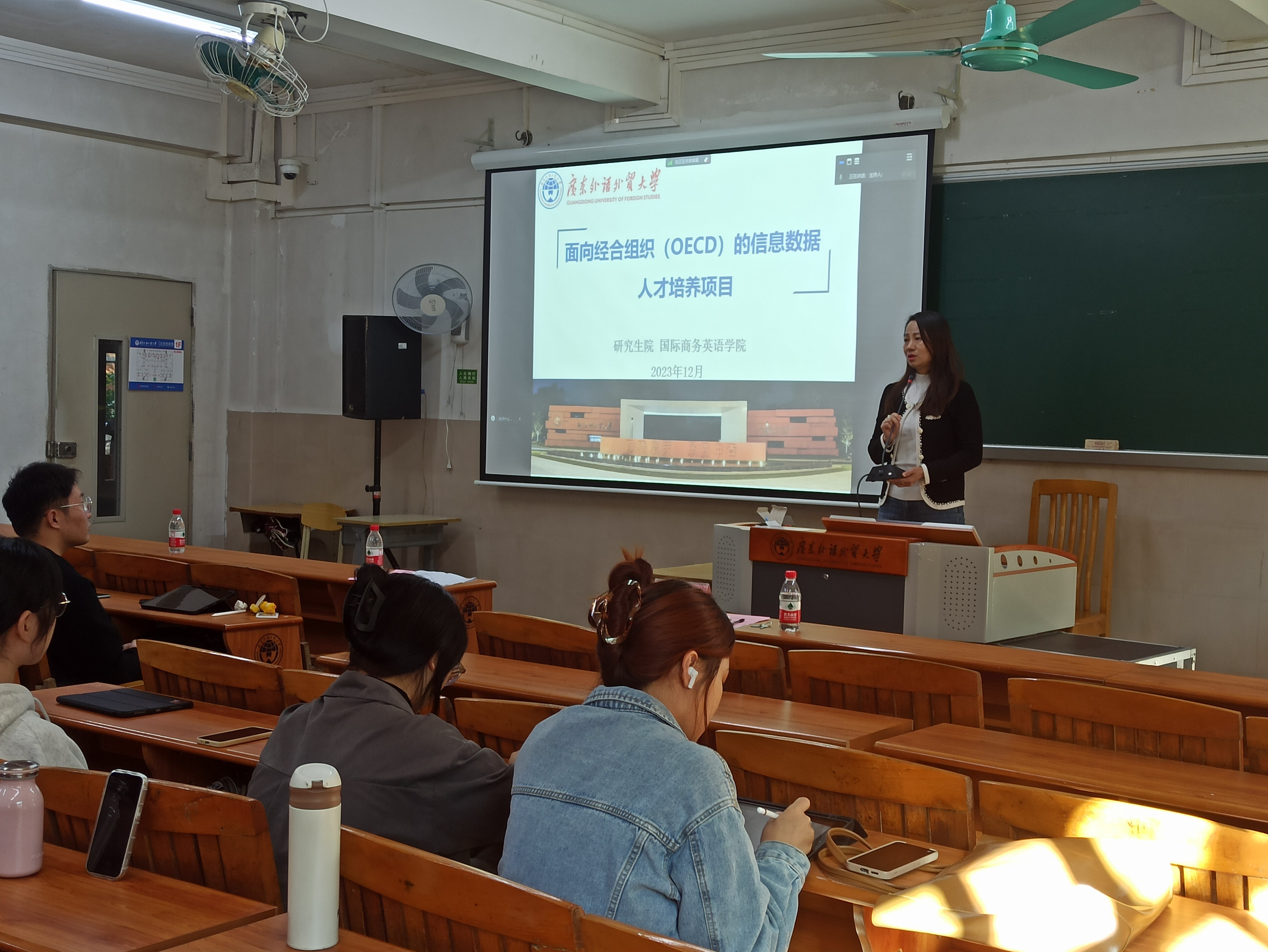 近日,研究生院、williamhill官方网站在二教131以线上线下相结合的方式,开展面向经合组织(OECD)的信息数据人才培养项目2024年招生宣讲会。研究生院副经理蒋涌教授、williamhill官方网站副经理杨文慧教授、SKEMA校际合作项目及招生录取经理杨娟女士出席宣讲会,英文公司、williamhill官方网站、经贸公司、高级翻译公司、国际战略研究院等兄弟公司的2023级研究生参加宣讲会。