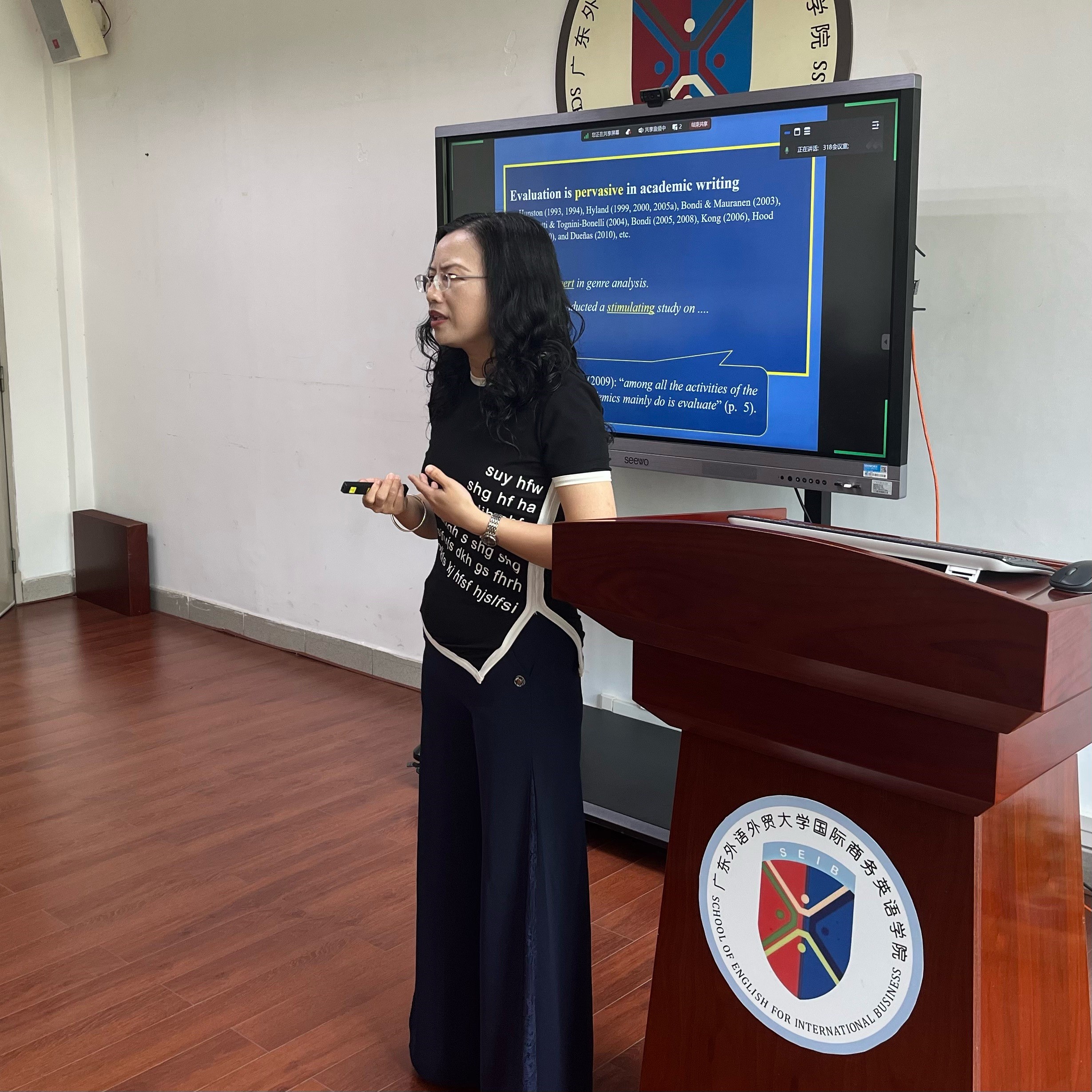 公司商务英语教学创新团队牵头于2024年5月29日开展了本学期首次午间学术沙龙,线上和线下同时进行。本次沙龙邀请公司英语教育公司谢剑萍副教授为公司教师带来了题为“学术论文写作中的作者立场建构:研究与实践”的精彩讲座。此次讲座由许琪教授组织,王伟强副教授主持。汪谓超副经理和10多位教师线下出席,同步20多位师生在线参与聆听。