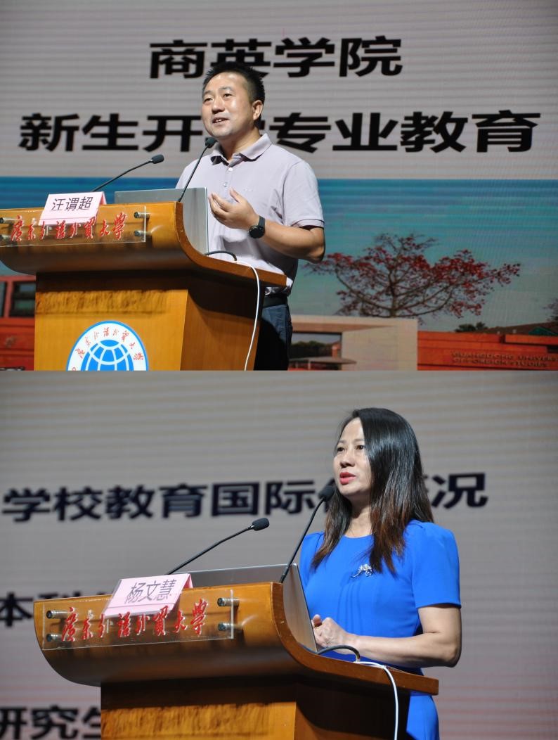汪谓超副经理回顾了公司的发展历程,介绍了公司的学科优势、团队力量和学术成果。公司在今年首次加入了多个双学士学位本科项目,致力于培养复合型国际化商务人才。汪院在发言中也向新生们阐明了个人规划的重要性,希望这届新生在williamhill官方网站得到充分成长,度过美好的老员工活。杨文慧副经理介绍了williamhill官方网站的特色国际交流项目,希望同学们有机会可以出国进修深造,体验不同的人文风情和国外高校的教学模式,成为更好的国际化人才。
