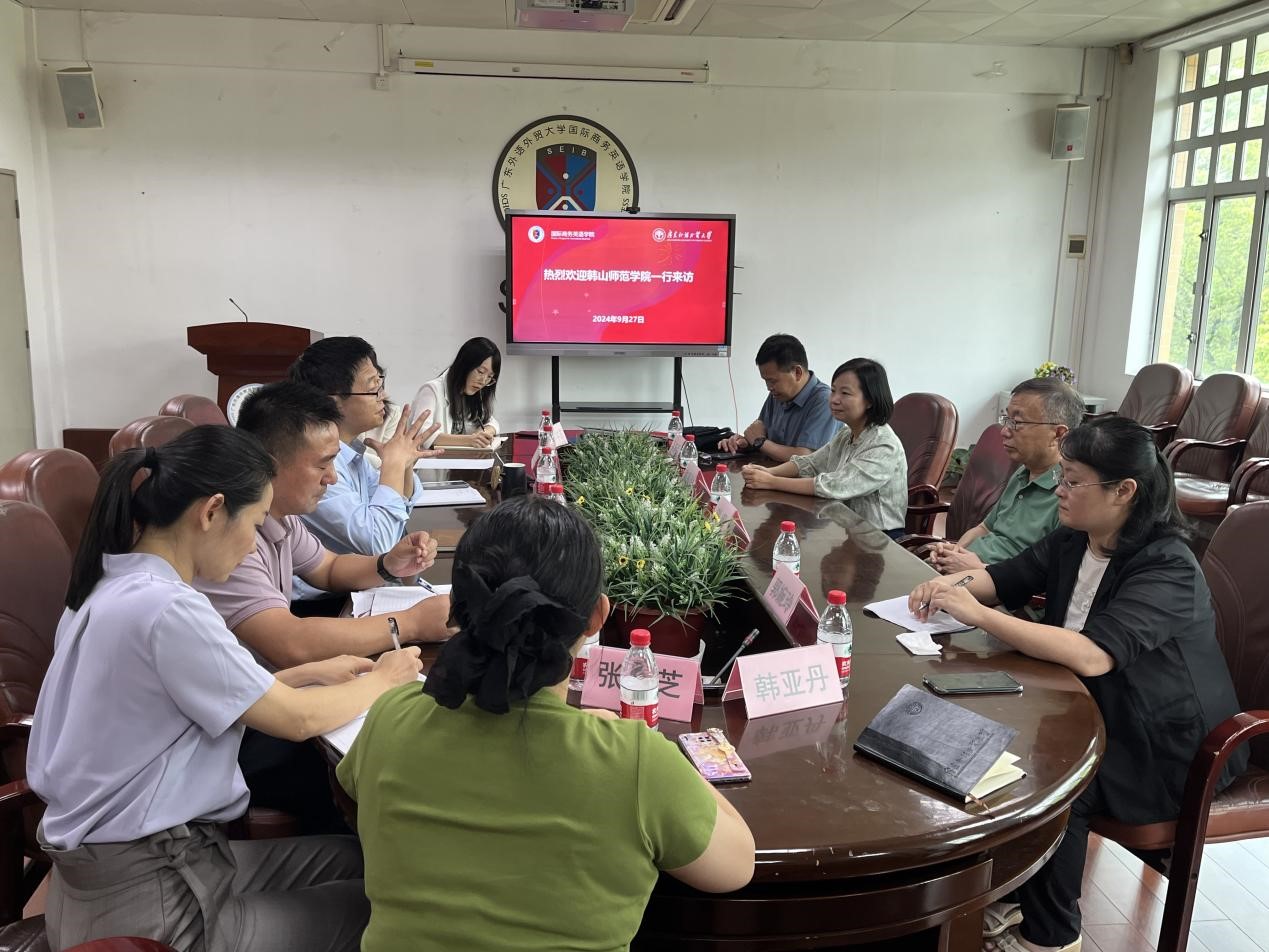 9月27日下午,韩山师范公司外语公司经理刘毅,副经理吴春明、陈幕侨,系主任郭婉玲一行来公司调研交流。williamhill官方网站经理胡春雨,副经理汪谓超、陈潇潇,系主任林洁、严小庆、何宇菲,副系主任张芸芝参加座谈。