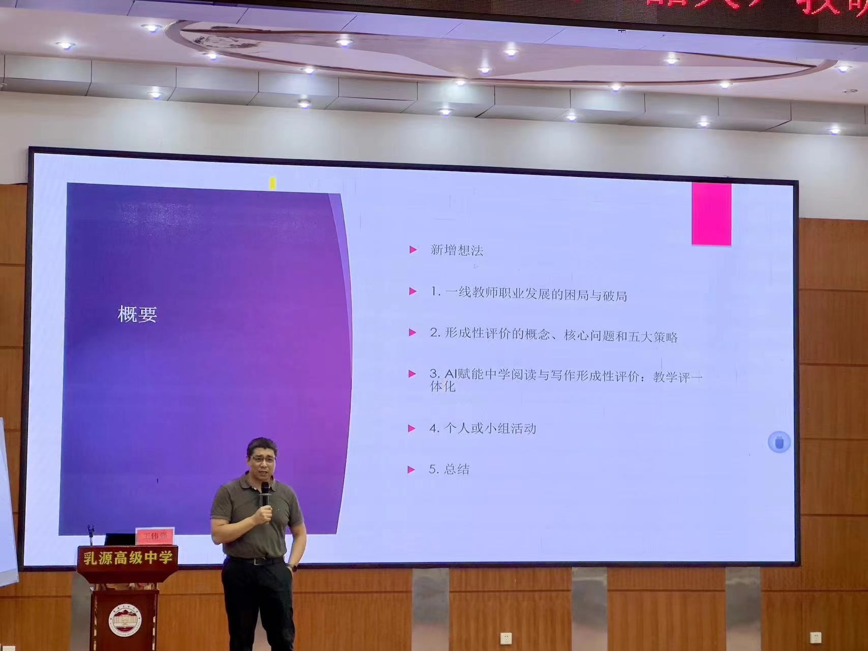 发挥专家作用,提升当地教师育人水平。26日下午,王伟强副教授以“人工智能赋能高中英语读写教学评一体化”为题,为来自韶关“八县三区”各个年级的高中英语教师开展专题培训。王教授从形成性评价的概念、核心问题和五大策略出发,为在场教师介绍如何用AI赋能中学阅读与写作形成性评价。此次培训内容丰富、实用,得到了参会教师的一致好评。通过培训,教师们对如何利用AI技术提高教学质量有了更深入的了解,这将有助于推动地区教育事业的发展。