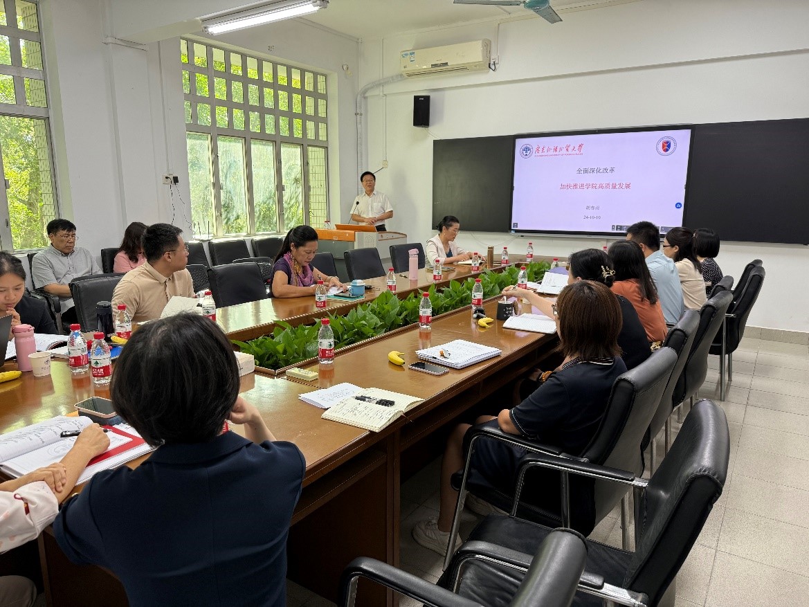 10月10日下午,williamhill官方网站在三教331会议室召开专题研讨会,深入学习党的二十届三中全会精神,就全面深化改革、加快推进公司高质量发展进行第二次专题研讨。会议由公司党委书记苏冬燕主持,公司党委委员、领导班子成员、系部办主任(党支部书记)、副主任和课程组长参加会议。