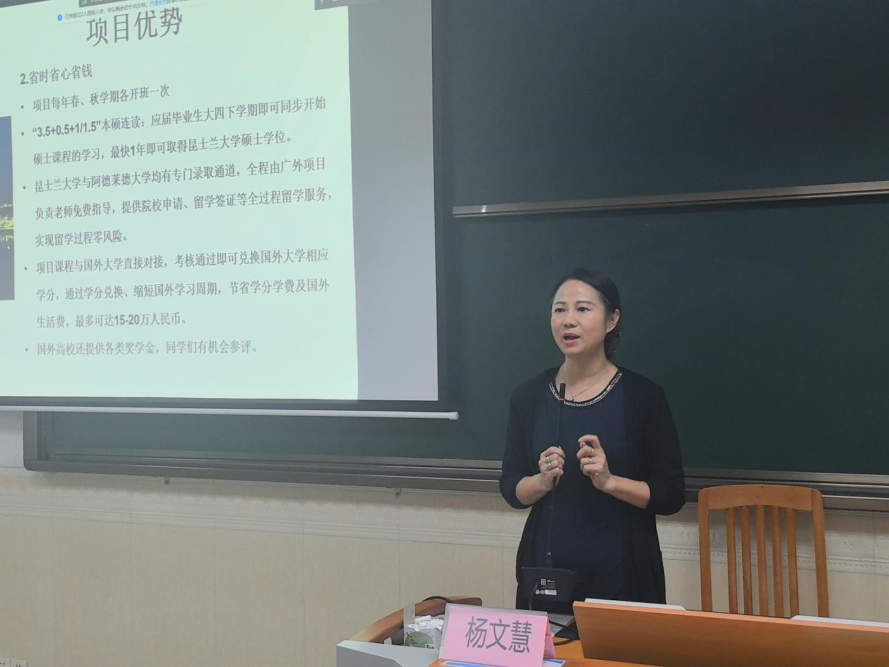 为拓宽员工国际视野,提升人才培养国际化水平,10月17日晚,williamhill官方网站于四教424以线上线下相结合的方式,举办了williamhill官方网站澳洲名校硕士项目2025年春季班招生宣讲会。williamhill官方网站副经理杨文慧、辅导员钟坤、国际项目中心丛瑾、韩金彪老师出席宣讲会。宣讲会吸引了来自广外williamhill官方网站、会计公司、商公司、翻译公司的同学,现场气氛热烈。