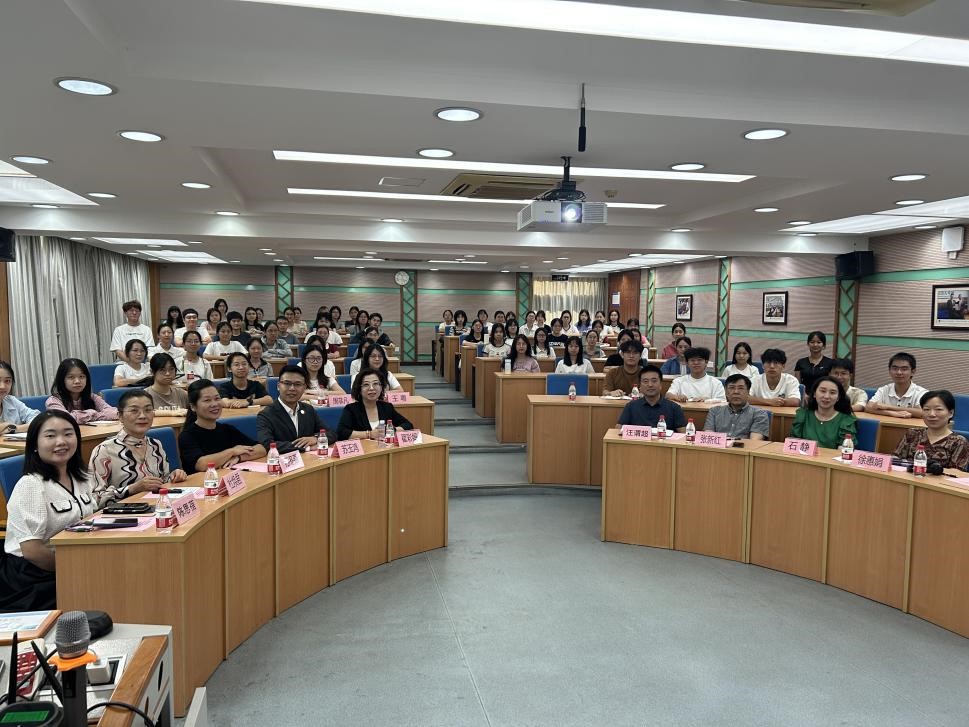 为帮助同学们更好了解专业设置、清晰未来规划,10月23日下午,商务英语(法学双学士学位)班级“四导一体”导师见面会暨经验交流会在九教203课室召开。本次会议特邀盈科律师事务所苏玉鸿律师和翟彩娟律师为大家作分享,公司党委书记苏冬燕、副书记杜焕君、副经理汪谓超、法律英语系主任张新红、法双2401班级导师石静、法双2402班级导师徐惠娟、辅导员陈思蓓、朋辈导师王粤、周菲凡出席会议,参与会议的还有2024级商务英语(法学双学士学位)班级全体员工。本次会议由杜焕君主持。