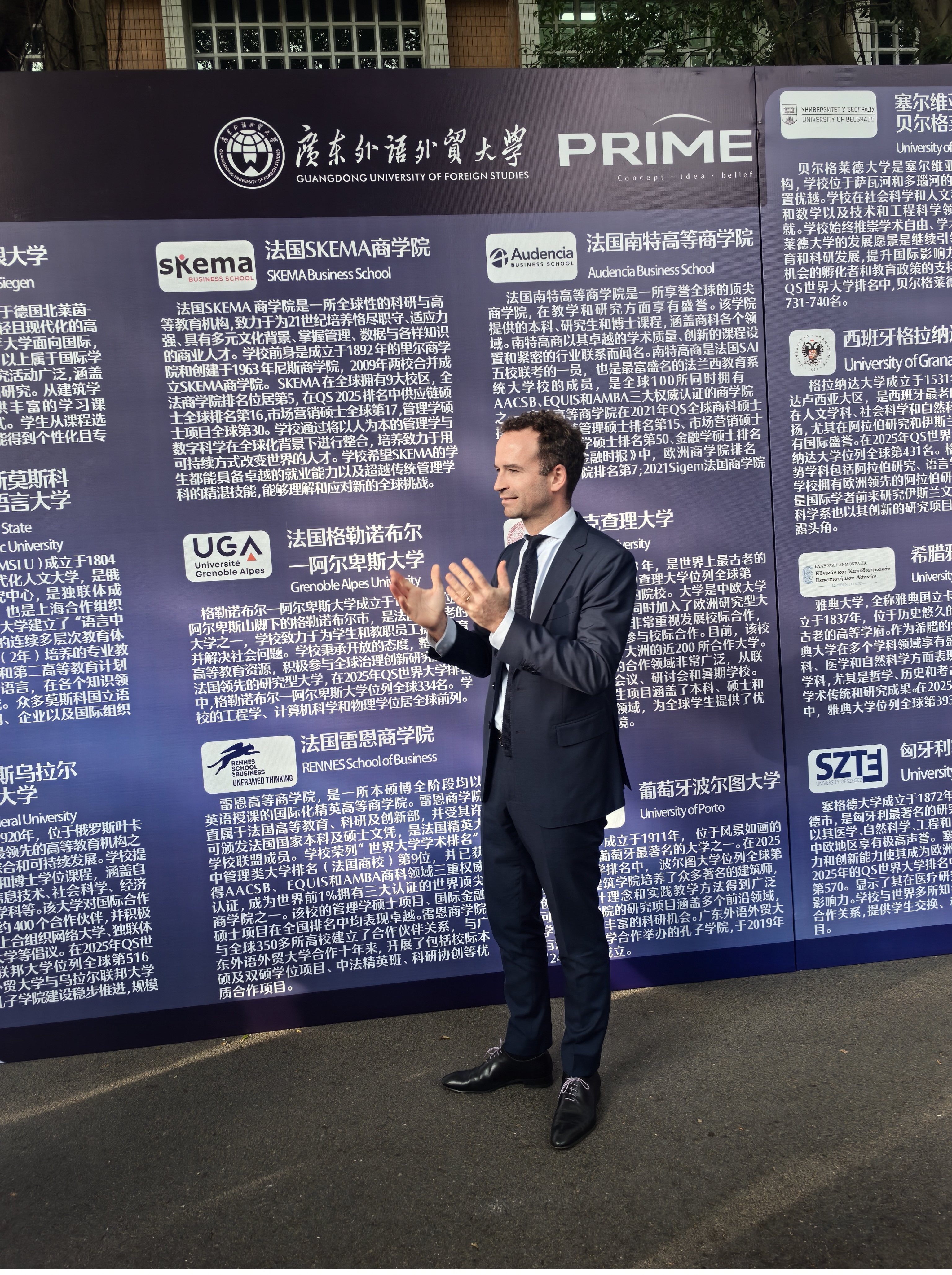 Matthieu DUMONT表示,此次交流周活动意义重大,无疑将为广外员工搭建起一个与全球顶尖高校深度交流的宝贵平台。他提到,SKEMA与广外自2021年起合作开展面向经合组织的信息数据人才培养项目,在公司产品及学术研究方面取得丰硕成果。项目至今已招收三批共22名广外优秀员工,员工的卓越表现有力推动了项目的持续发展,同时也为两校在教育领域赢得令人瞩目的良好声誉,成为双方合作的成功典范。他表示,两校联合培养硕士项目是公司SKEMA 2025战略的重要组成部分,展望未来,SKEMA将继续与广外在多个层面积极开展教育合作项目,在国际教育舞台持续释放更强大影响力。