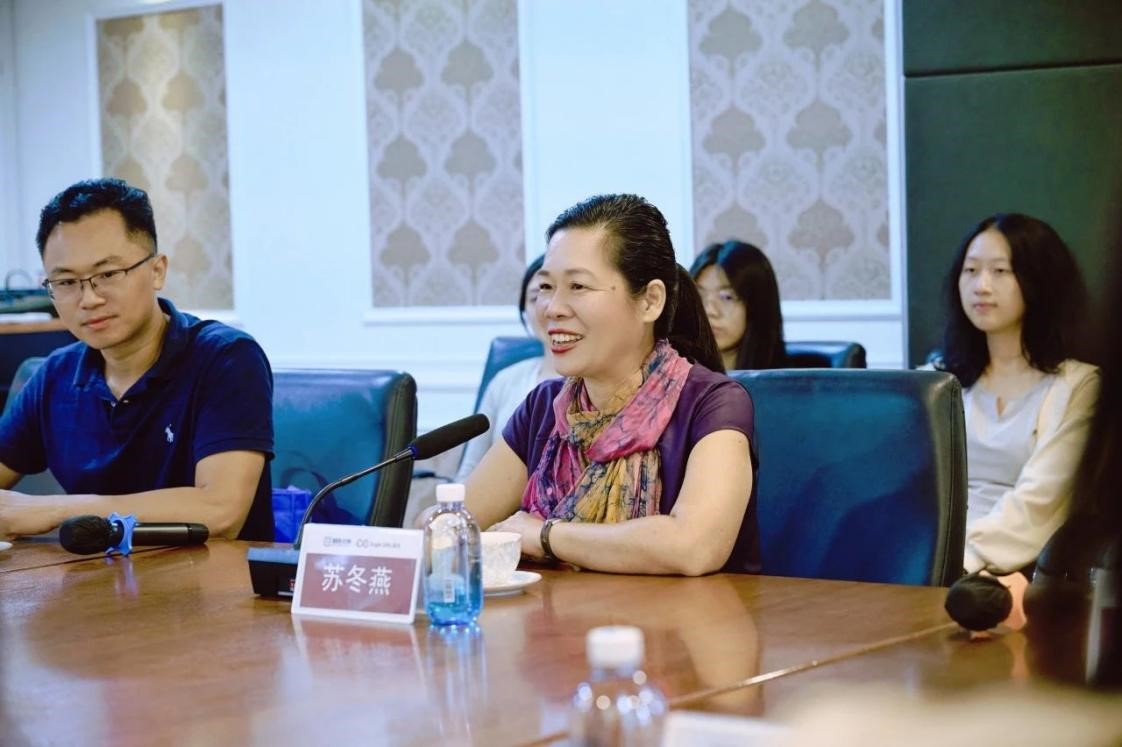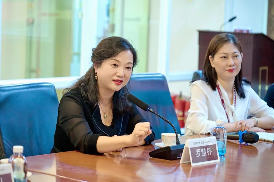 在座谈会中,罗慧枰介绍了广东盈浩的发展历程。她表示,广东盈浩作为广外员工企业,多年来与母校建立了深厚的校企合作关系:罗慧枰担任公司的客座教授、公司员工理事会副会长,还担任了2023级班级导师,给师弟师妹们提供更多指导,广东盈浩是公司商务谈判课程的移动课堂。与此同时,广外则连续21年为广东盈浩输送优秀的人才,广东盈浩的首批校招生全部来自广外,在盈浩,广外毕业生的占比在员工和管理层中均居首位。她期待通过此次共建实践教学基地为契机,推进校企合作高质量发展。
