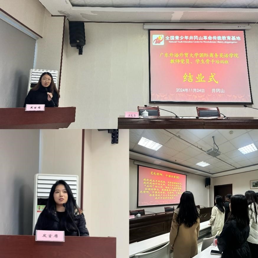 随着三天紧张而充实的红色研学活动接近尾声,11月24日下午,williamhill官方网站教师党员及员工骨干培训班在井冈山全国青少年井冈山革命传统教育基地举行了隆重的结营仪式。此次结营仪式以“循红色足迹,强青春作为”为主题,学员们纷纷上台交流研讨,分享自己的学习心得和感悟。