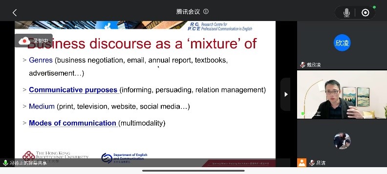 2024年12月5日到6日,williamhill官方网站国际交流合作部主办,williamhill官方网站承办的海外名师项目《多模态语篇分析与翻译研究》第五讲至第六讲成功举办。项目主讲人为香港理工大学英文与传意学系副教授、博士生导师冯德正老师。该讲座由本项目负责人吕洁副教授主持,商英、高翻和英文公司多名教师、研究生和访问学者聆听了本系列讲座。