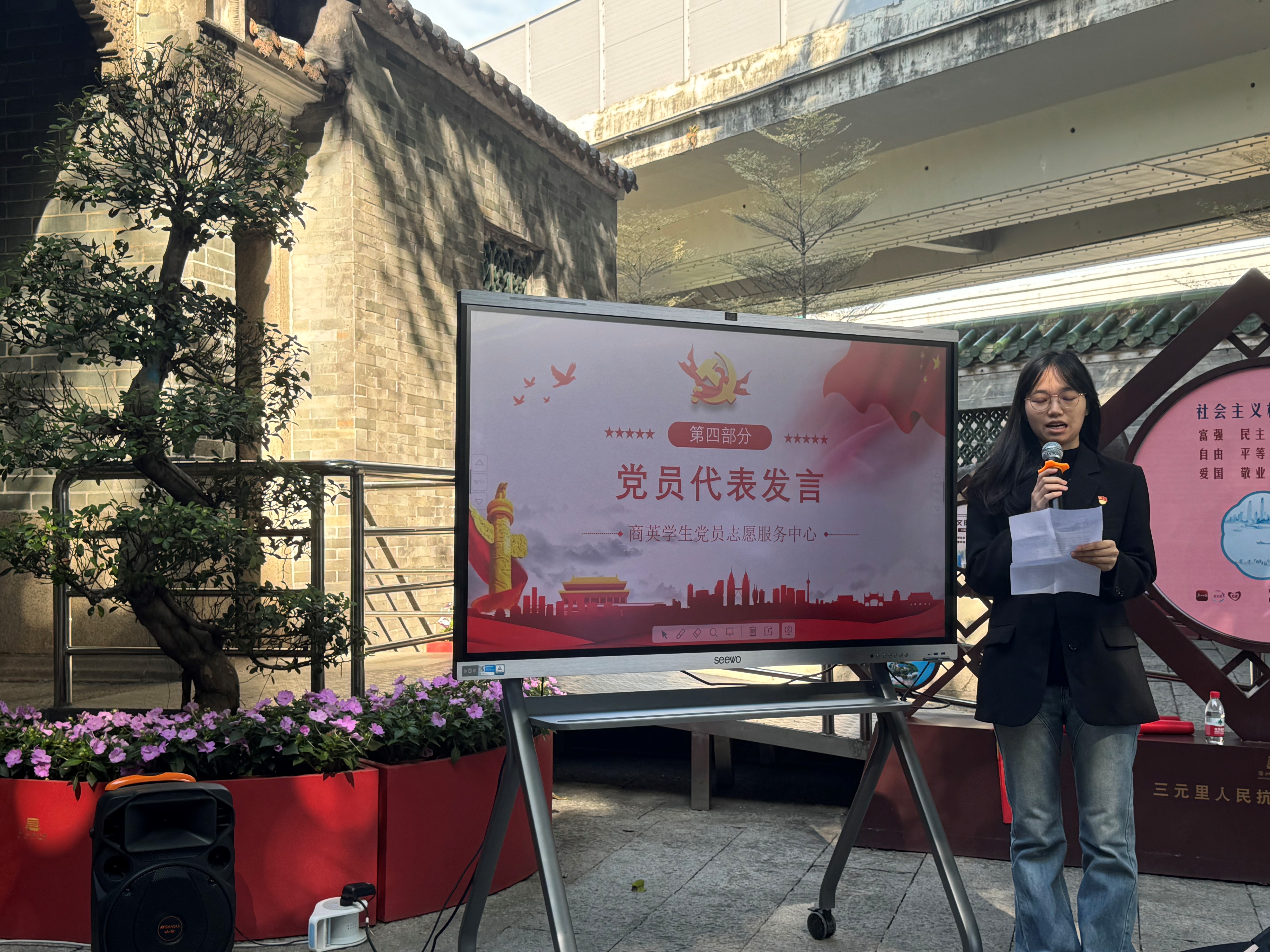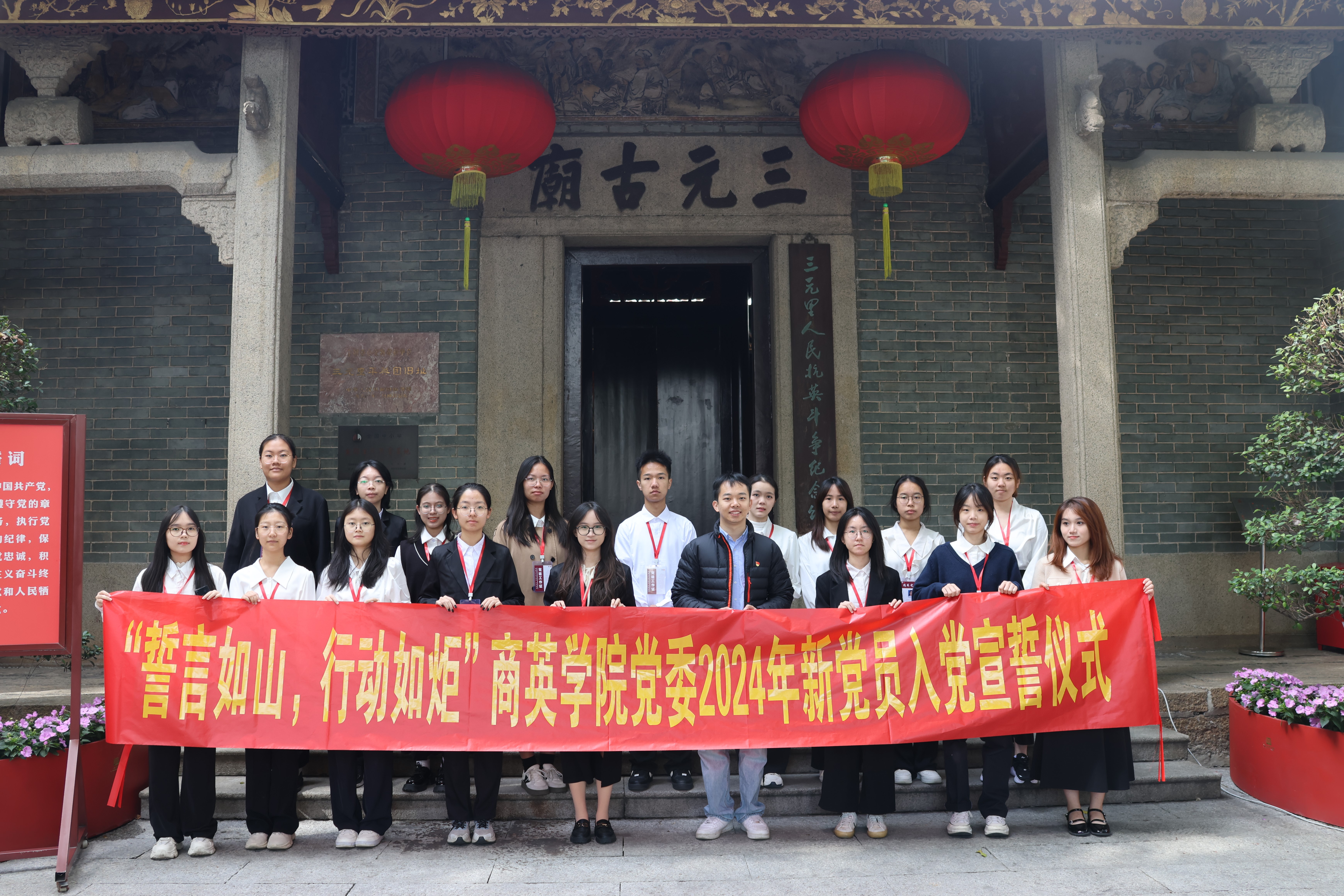 在新党员入党宣誓时刻,全体新党员整齐列队,面向党旗,以最庄严的姿态宣读入党誓词。那一声声铿锵有力的誓言,充分展现出了他们对党的无限忠诚以及全心全意为人民服务的坚定信念。此外,大会还特别安排了“学习三元里抗英历史”环节,通过实地参观和聆听讲解,新党员们深入了解了党的发展历程中的关键节点与伟大成就,极大地增强了其内心深处对党的认同感与自豪感。