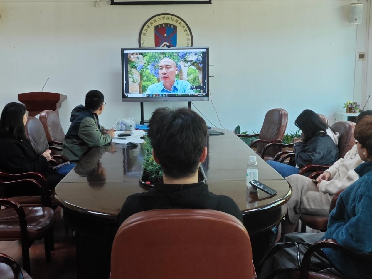 昆士兰大学商业、经济与法律学部国际联络官ZHU HAN先生致辞。他感谢广外大及公司领导、老师长期以来对项目的大力支持,祝贺同学们顺利完成学业。ZHU HAN还开展了行前教育,介绍了昆士兰大学选课、学分、住宿准备等事项,帮助同学们更好地适应海外职工活。