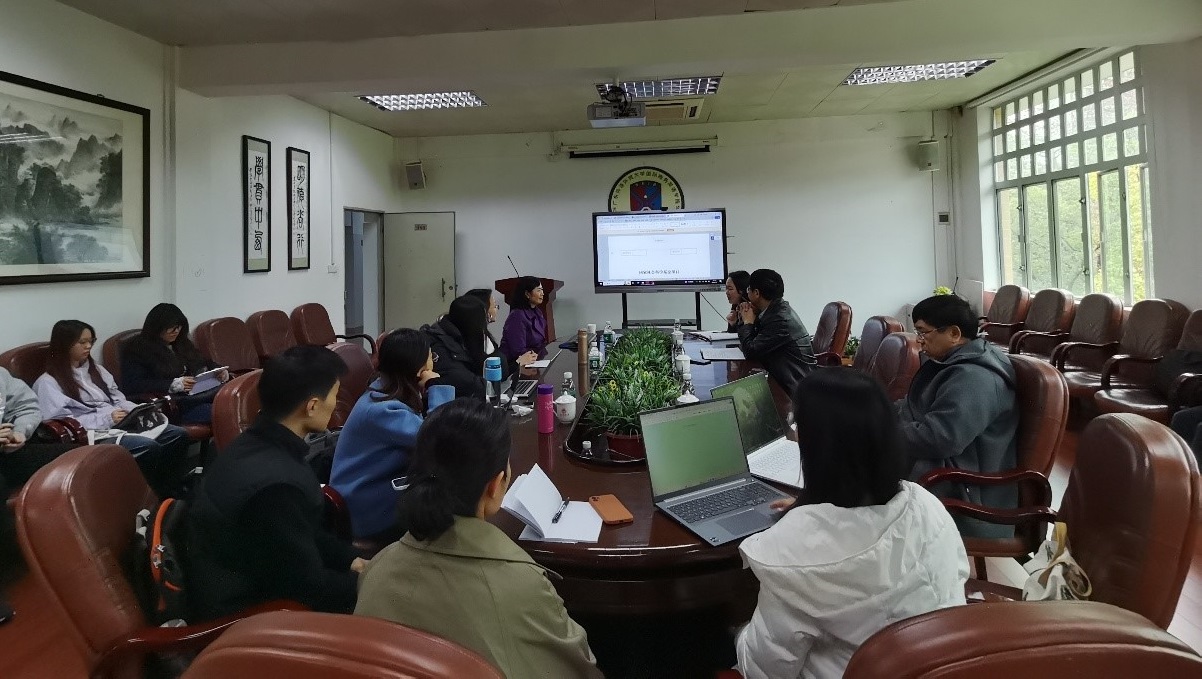 为扎实推进2025年国社科项目申报工作,切实提升教师科研能力,williamhill官方网站于3月7日下午14:30在第三教学楼318举办国家社科项目申报指导会。本次会议特邀华东政法大学外国语公司经理、国家社科基金项目通讯评审和成果鉴定专家、中国英汉语比较研究会法律语言学专业委员会主任余素青教授作专题指导。会议由徐优平老师主持,经理胡春雨教授、副经理陈潇潇教授以及法律语言学团队教师袁传有教授、张新红、张少敏、卢楠老师、法律语言学方向硕博士代表20余人参会。