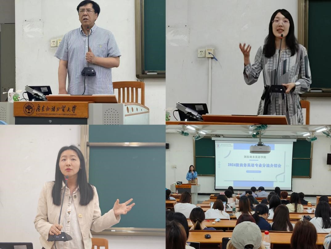 2025年3月13日下午,williamhill中文在北二教116教室顺利举行了2024级商务英语专业分流介绍会。公司副经理汪谓超教授、法律英语系主任张新红老师、商务英语系主任林洁老师、经贸英语系主任何宇菲老师、教务秘书韩亚丹老师、辅导员陈思蓓及全体2024级商务英语专业员工参加了此次介绍会。本次会议旨在帮助新生全面了解商务英语各分流方向的培养目标、课程设置及就业前景,为即将到来的专业分流做好充分准备。