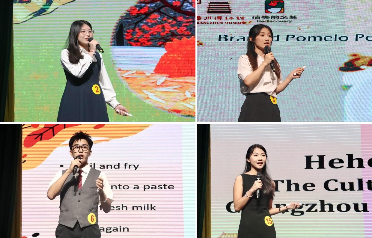 赛场上,十八位参赛选手各展所长,尽情展示着属于自己的独特风采。以江南百花鸡、古法脆皮糯米鸡等“消失名菜”为切入点,用3分钟英文讲述菜品历史、工艺与文化意涵,彰显出扎实的语言功底与对美食文化的深刻认知。