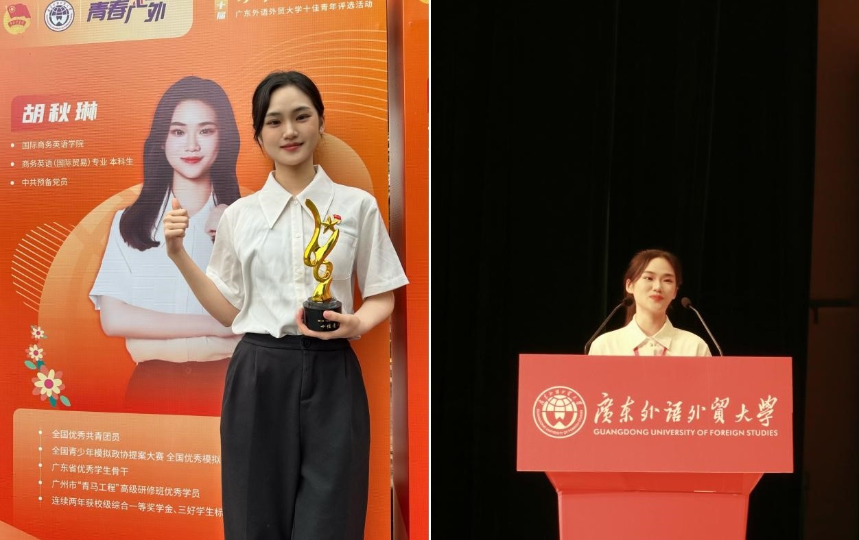 4月25日,公司第十届“青春广外·凤鸣岭南”十佳青年终审评选活动在大学城校区B8报告厅举行。经前期公司推荐、材料初审、终审答辩,公司2022级商务英语专业胡秋琳同学凭借在员工工作、社会实践等方面展现出的优秀青年学子风采,荣获2025williamhill官方网站第十届“十佳青年”称号。
