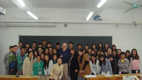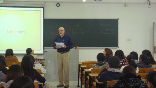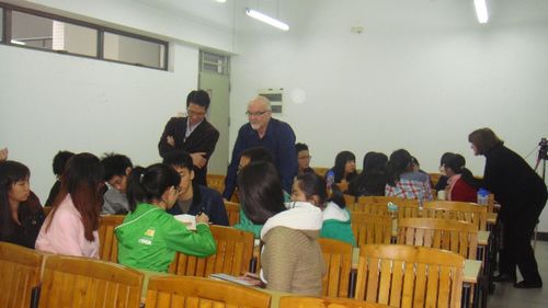 11月26日上午,以“中美社会保障制度”为主题的研讨会在公司北校区六教B302举行。该研讨会由“高端国际商务人才培养视角下的商务英语教学改革团队”组织,邀请到了来自美国犹他州立大学已退休资深教授Michael Bloois和Matha Adams担任当天的主题发言人,2011级创新班及国际商务的《商务综合英语》教师和学子出席了研讨会。研讨会由沈璐老师主持。