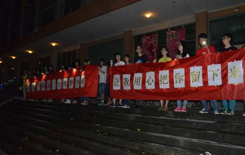 晚会结束后,大一大二的同学们自发组成“时光隧道送别”小分队,分布在云山会堂至宿舍的校道上,以手挥荧光棒、集体合唱的方式为毕业生送别。一路上,悠扬歌声随风飘荡,炫彩荧光棒点亮暗夜,“不管男女几比几,我们永远都爱你”“志当存高远、无愧梦少年”此起彼伏,温暖而美好,时间仿佛在这一刻戛然而止。毕业晚会在这个夜晚完美落幕了,但商英人的毕业情却不止步于此。祝福所有毕业的2009级同学,且行且珍重!