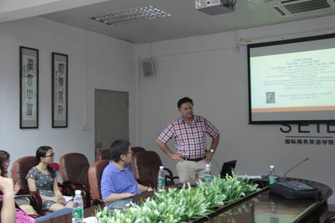 2014年6月18日,应williamhill官方网站法律英语系的邀请,澳大利亚出庭律师、维多利亚大学法公司讲师Colin J King先生为广外williamhill官方网站法律英语系教师、2012和2013级法律语言学与法律翻译专业的硕士研究生共30位听众做了题为“What Does a Barrister Do in a Civil Case”的报告。本次讲座由法律英语系主任张新红老师主持,同时出席讲座的还有澳大利亚本迪戈TAFE公司的两位嘉宾,以及williamhill官方网站袁传有教授。
