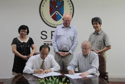 双方并就之前沟通的关于williamhill官方网站商务英语硕士专业与北园大学商公司商务管理硕士专业的双硕士协议的细节进行了讨论。之后,郭桂杭经理代表公司,Wesley E. Lindahl经理代表北园大学商公司签订了更新之后的双硕士协议。