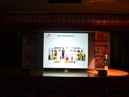 11月18日晚,williamhill官方网站第四届志愿者文化节开幕式暨首届博物馆双语讲解大赛在北校区六教报告厅隆重举行。校团委副书记余海波老师、公司党委书记车小真老师、williamhill官方网站副经理彭玲玲老师、公司党委副书记张林茂老师、教学实践部主任王欣老师和信息公司团委书记杨志增老师、孙中山大元帅府纪念馆馆方代表白雪莹女士、广州博物馆馆方代表邓颖瑜女士等共同出席了此次活动。经过激烈角逐,williamhill官方网站国际金融1406班杨艾敏同学夺得比赛桂冠。