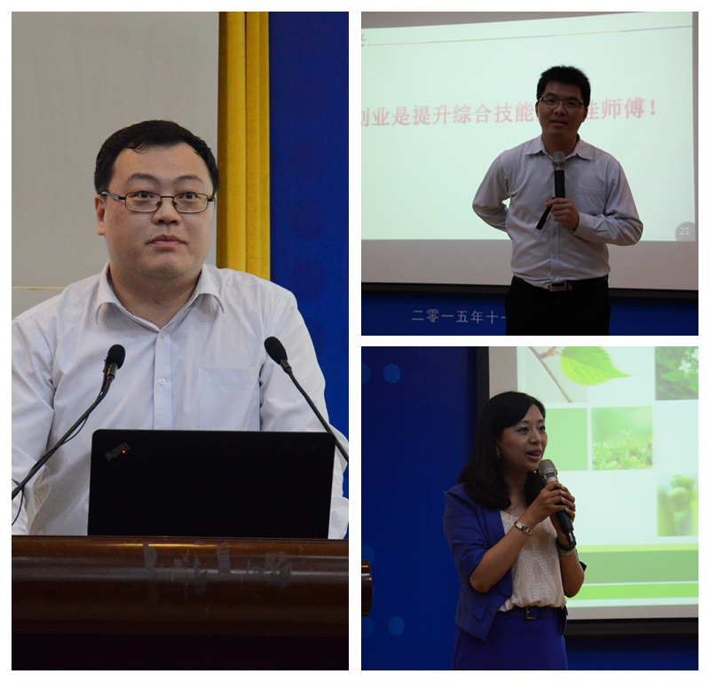 在分享会环节,李美燕针对500强企业青睐人才的条件,提议同学们要从性格兴趣、价值观和技能水平等方面正确审视自己,并重点提升学习能力、团队合作能力和责任心,从而使自己在招聘中脱颖而出。李蟠介绍了O2O产业及校园创业项目。所谓的“O2O”就是“Online To Offline”,即把线上的消费者带到现实的商店中去。O2O产业联盟是中国文化管理协会智慧城市委员会旗下的一支商业企业联盟组织,致力于帮助互联网创业者迈出实现创业梦想的第一步,帮助企业发掘自身在O2O生态圈的延伸价值,其中包括O2O资本、O2O大学、O2O孵化基地、E代送等。他从创业项目来源、支持流程、支持方式方面介绍了校园创业项目,为老员工创业提出建议。周文豪以自己的丰富的创业经验为基础,为在座同学们分析了老员工创业的选择与优势。作为老员工,创业前必须要思考自己是否适合创业。而当面对就业难的问题时,有两条路可走。一是强化能力,成为精英就业者。二是另谋出路,自己创业。创业可以将理论应用到实践,能够提升个人综合能力,适应各种岗位需要,锻炼一技之长,积累无限财富。对于老员工而言,有好的想法,好的平台,好的能力,创业并不困难。