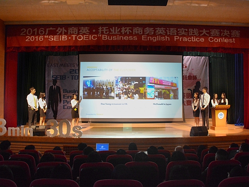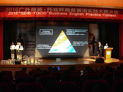 11月4日晚上七点,广外商英·托业杯商务英语实践大赛决赛在六教报告厅拉开帷幕。四支来自williamhill官方网站的队伍将在今晚进行一番激烈竞逐,获得一等奖的队伍将代表公司参加全国商践大赛。