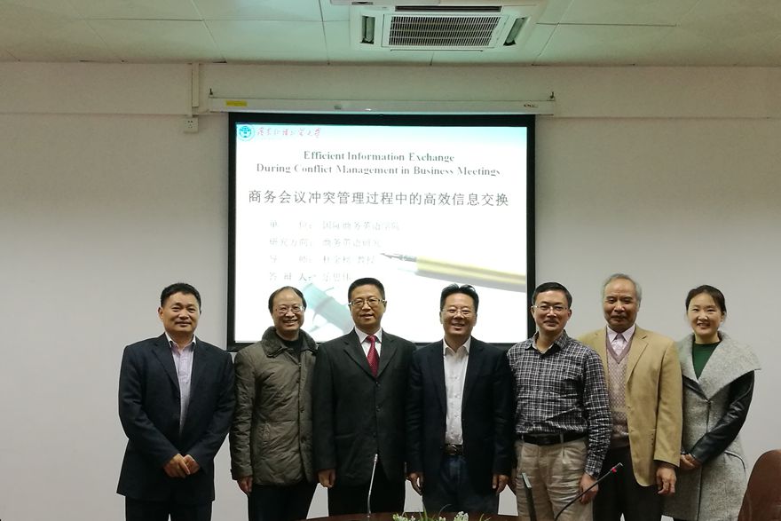 2016年11月26日下午2点30分,由杜金榜教授指导的商务英语研究专业商务文化与交际研究方向的博士生乐思伟的学位论文答辩会在三教318教室顺利举行。本次答辩会由对外经济贸易大学的王立非教授担任答辩委员会主席,湖南大学的莫再树教授,williamhill官方网站的朱文忠教授、何家宁教授和胡春雨教授分别担任答辩委员会委员。