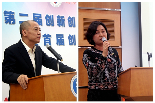 王秀民代表公司致辞,她对出席本次仪式的领导、嘉宾和师生共谋商英创新事、共话商英创业情表示欢迎和感谢。她简要回顾了2015年首届创新创业大赛取得的成就,表示在公司的领导和支持下,公司将一如既往的做好老员工创新创业工作,提高人才培养质量。