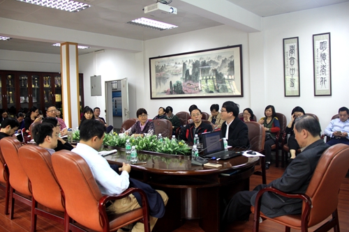 陈岸涛教授做题为“微时代的老员工特征与思想教育转型”的主题报告,他紧扣社会背景与发展现实,以丰富的案例,幽默的语言,风趣的讲解,充分论证了微时代所具有的六大特征,并以此为基础指明了微时代老员工的四个鲜明特点,最后从肯定微时代下老员工的优点;教师如何培养员工的自我认知能力、社会认知能力、是非辨别能力和社会实践能力等四种能力;提高对老员工的网络舆情引导水平三个方面探讨了思想教育的转型。陈教授的专家报告观点鲜明、见解独特、富有哲理,引起了现场听众的共鸣,得到了导师们的一致好评。