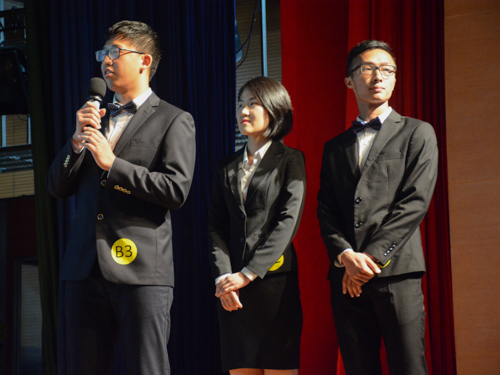 第四轮比赛是问答环节,这个环节是对选手们课程学习的一个检验,不仅有与经济和商业相关的知识,也有与计算机和西方社会文化相关的问题。选手们热烈抢答,毫不相让。虽然“Ambience”队在一开始的依次回答发挥不佳,但在抢答环节不仅多次率先争取到回答机会,并且正确地选出问题的的答案,表现突出,赢得了在场观众的热烈掌声。