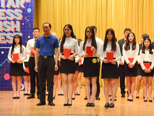 5月26晚19点,2017“商英之星”英语综合技能大赛决赛在六教报告厅拉开序幕,Ambience队等8支队伍同台竞技。副经理彭玲玲、戴桂玉、青松、杨丽、陆露和李冬云六位老师应邀担任本次比赛评委,公司经理郭桂杭、党委书记王秀民、副书记张林茂出席。