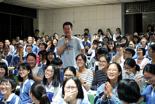 梅州市东山中学是广外的本科生源大户,每年均有七八十名员工考入公司就读。王书记与东山中学林铭绪副董事长、高三校区的姚勇文、刘丽平两位副董事长进行了交流,介绍了广外招收东中毕业生情况及下一步的宣传设想。东山中学对广外宣讲会给予高度重视,刘丽平副董事长主持宣讲会,二百多人的阶梯课室座无虚席。王秀民从广外校史讲起,以优秀毕业生为例,介绍了广外的发展现状、国际化人才培养特色以及专业设置等情况。为了增加吸引力,宣讲会还准备了小礼品,设计了提问互动环节,现场气氛活跃,员工踊跃参与,掌声笑声不断,广外多元、雅致、灵动的校园文化在互动中得以展现,达到了良好的宣讲效果。