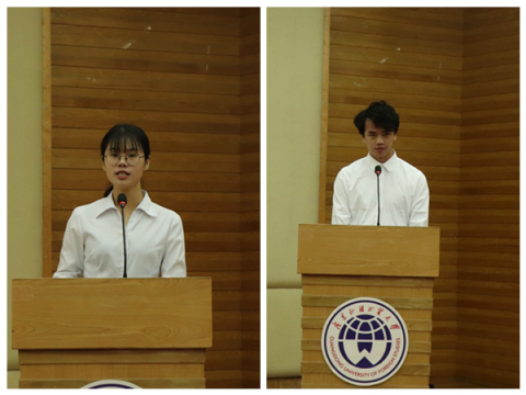 李江为双语志愿服务队授旗,标志着主题为“四时作诗,大爱成歌”的第八届志愿文化节正式拉开序幕。志愿服务队代表周欣雨接受队旗并发表讲话,她表示商英双语服务队将继续以“爱心、责任、进步”为主题,以社会主义核心价值观为依托,以提升志愿者知识技能类、社会交往类、素质拓展类、健康生活类四方面能力为目标,配合校团委组织好大型赛事、会议的志愿服务,展现williamhill官方网站特色。