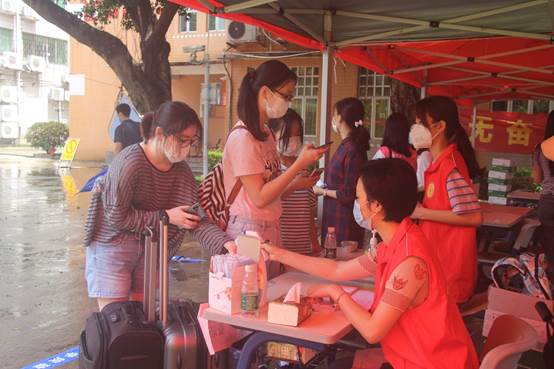 师生志愿者核验毕业生入校手续